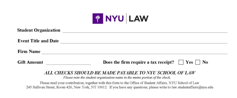 Office of Development & Alumni Relations: Student Group Guidelines Sample Gift Card: Click here to return to the Office of Development & Alumni Relations: Student Group Guidelines Click here to download the NYU School of Law Gift Card